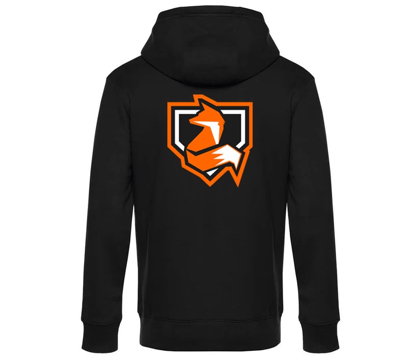 Męska bluza czarna z nadrukiem logo Klubu Baseballowego Lisy Białytok (v2) + herb na plecach